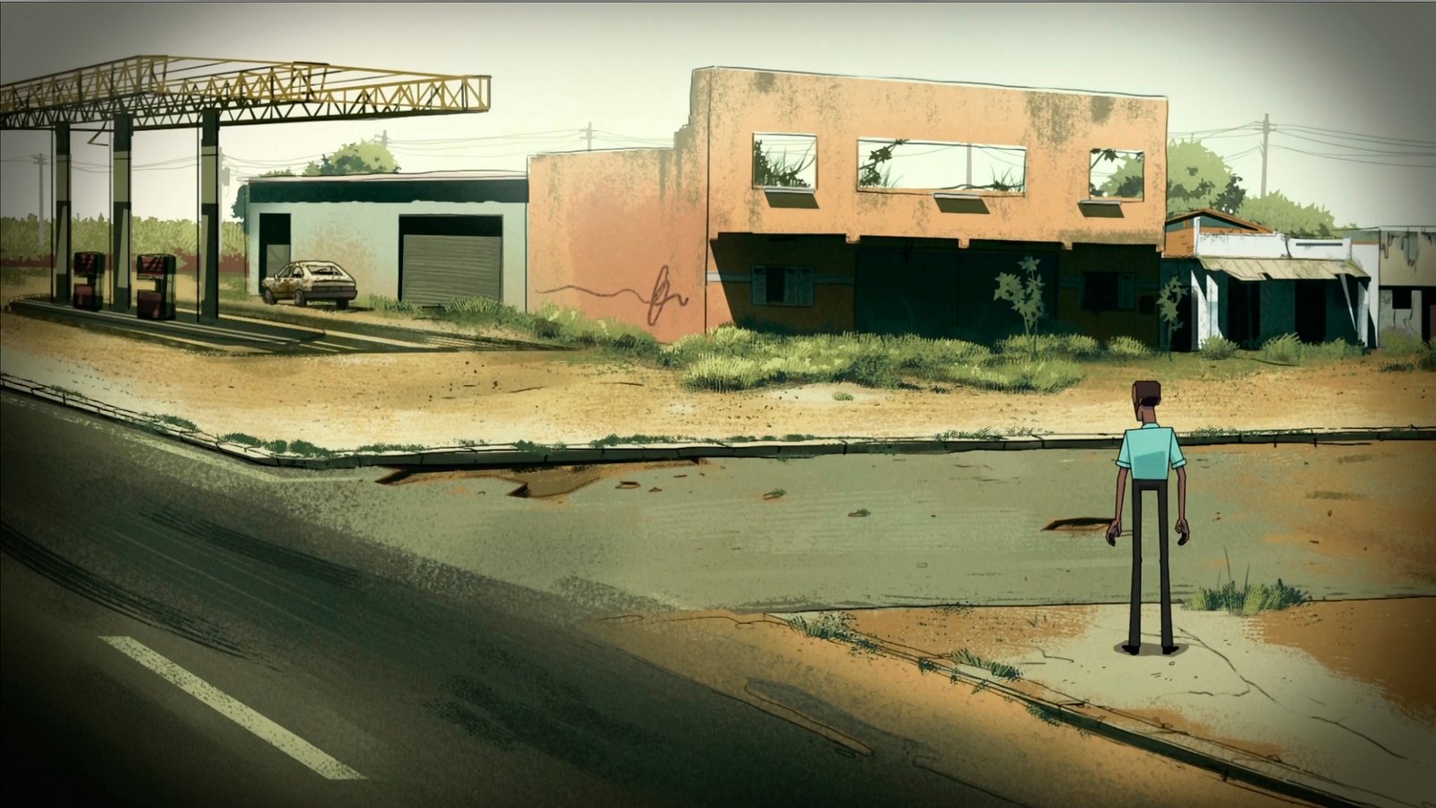 Um jovem percorre uma cidade em ruínas distribuindo pílulas para pessoas enclausuradas em seus apartamentos.